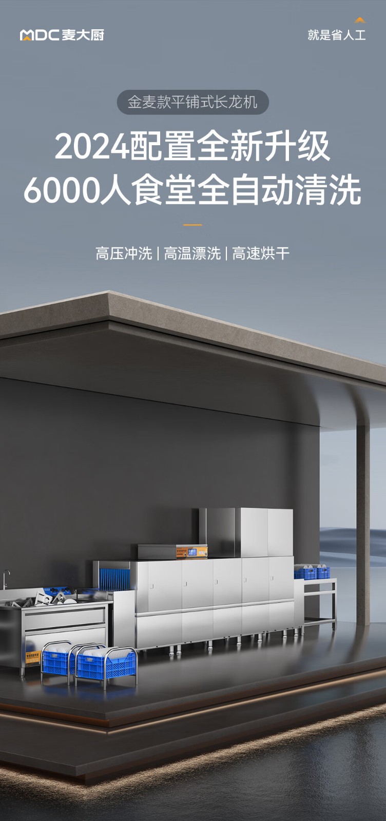 麦大厨金麦款平放式触屏热回收5.9m三缸双喷双烘洗碗机