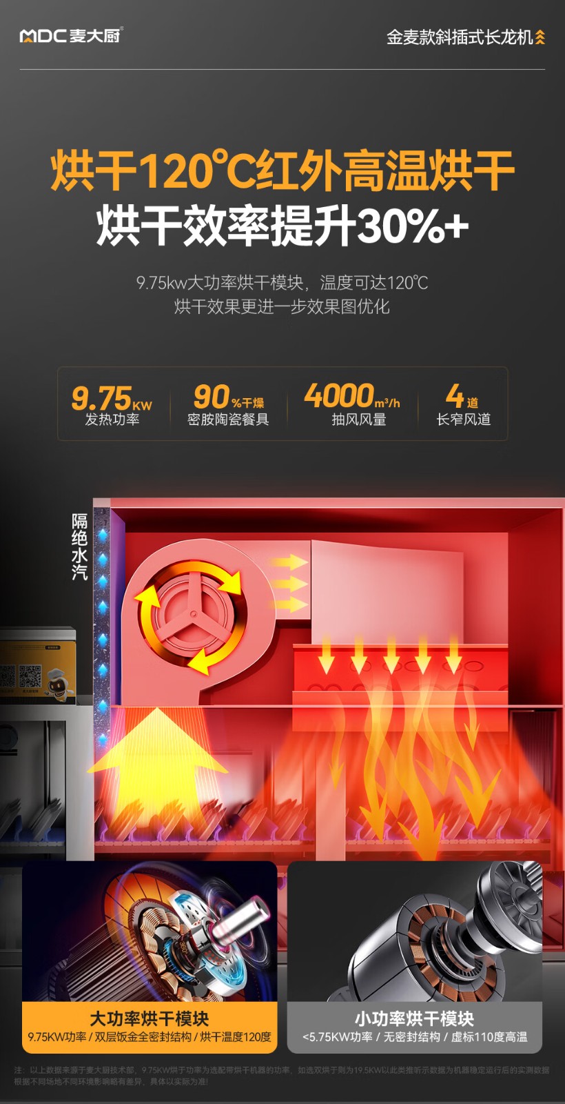 麦大厨金麦款斜插式触屏热回收4.45m双缸双喷单烘洗碗机