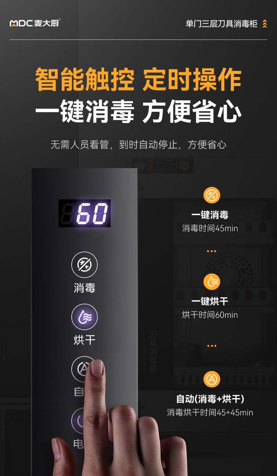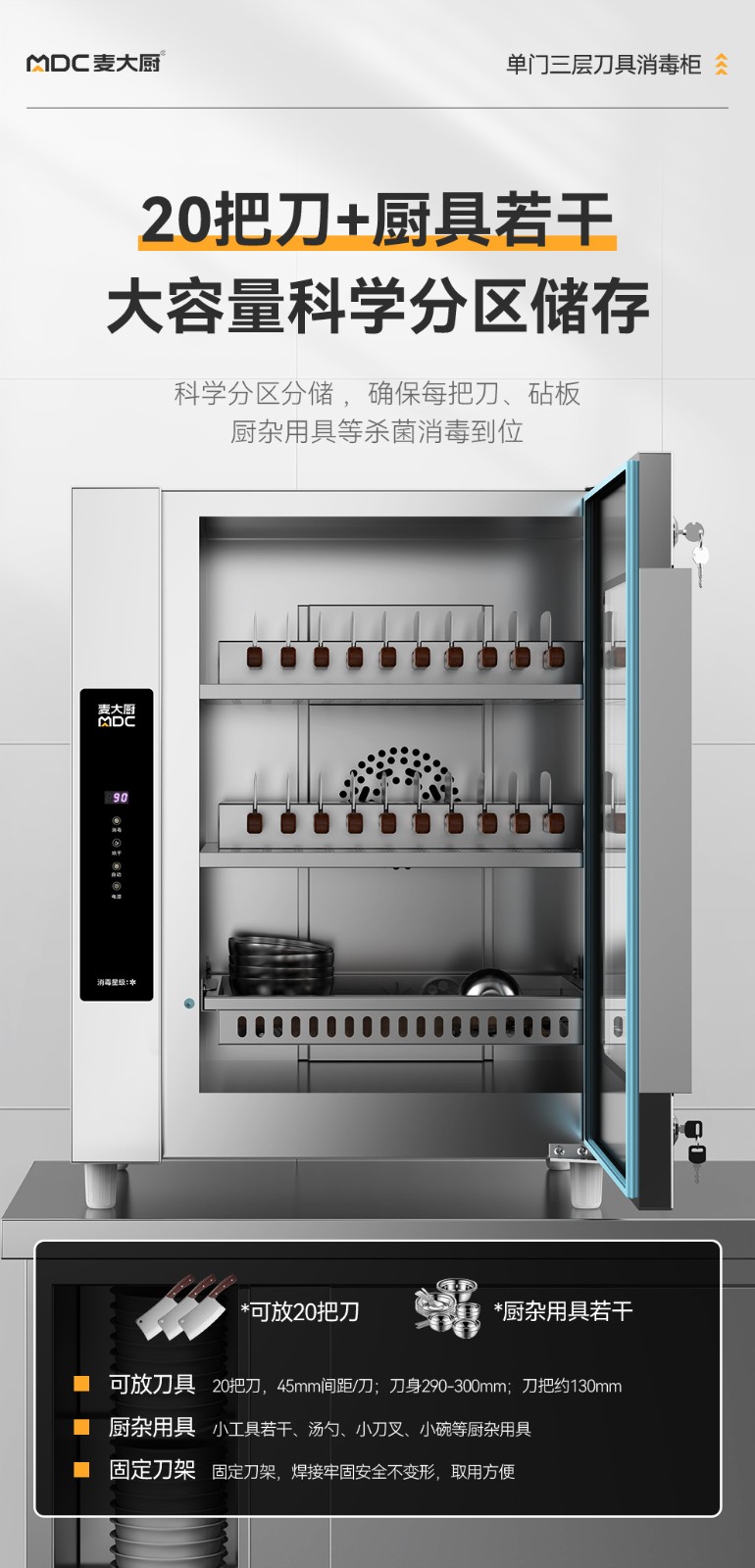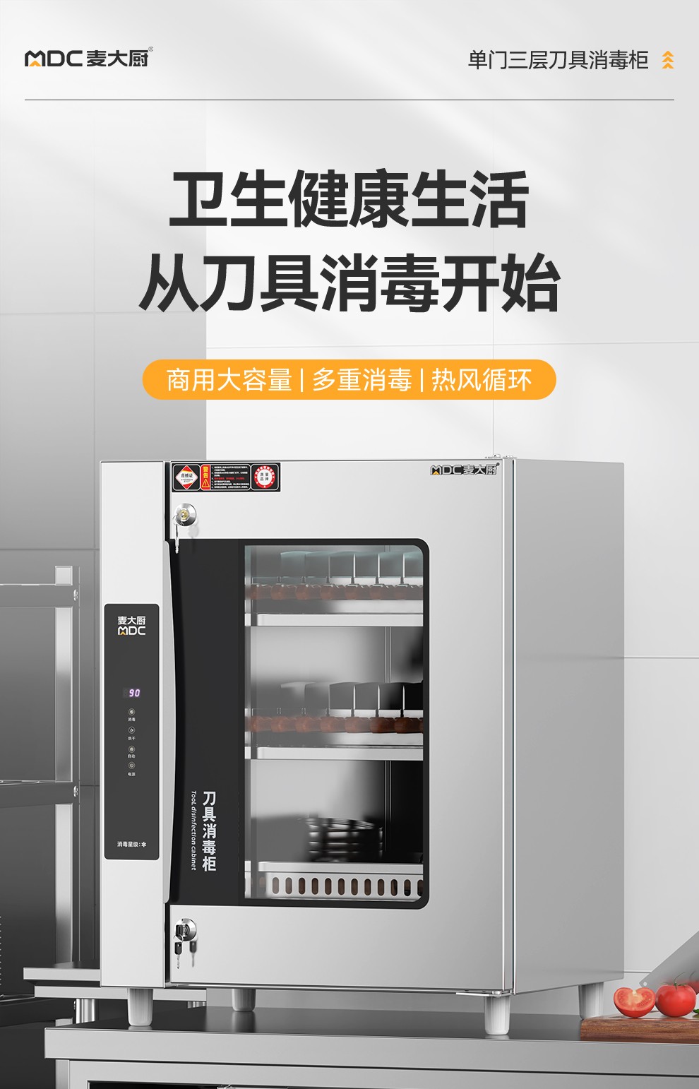 麦大厨智能款单门三层臭氧紫外线热风循环消毒柜