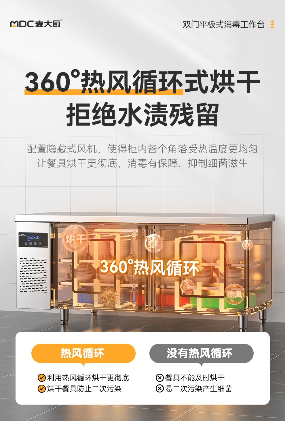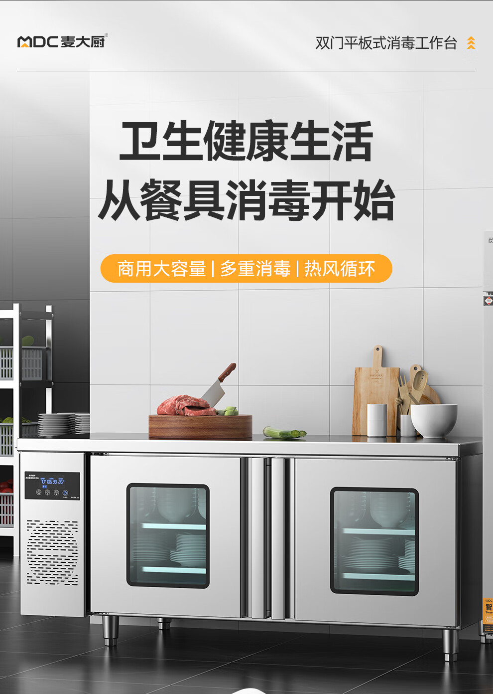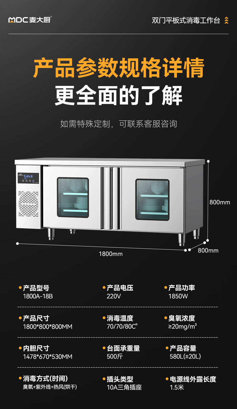 麦大厨1.8m双门平板式臭氧紫外线热风循环消毒工作台