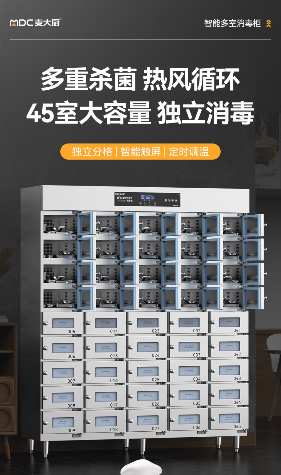 麦大厨45室智能触屏型热风循环中温消毒柜4.5KW