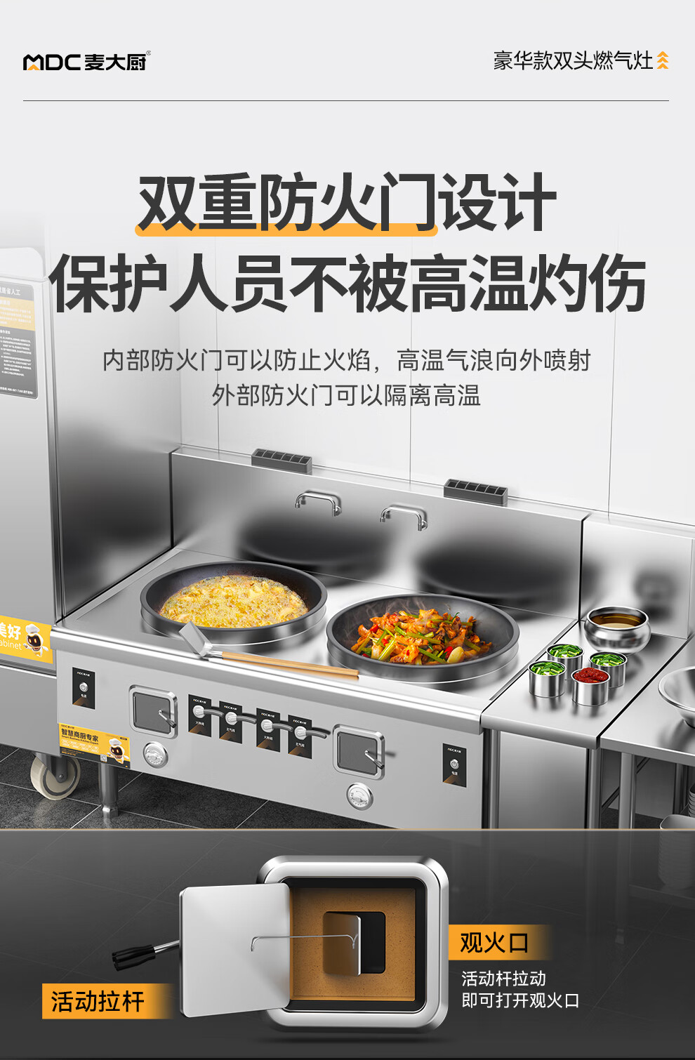 麦大厨燃气猛火大锅灶豪华款燃气双头大炒炉600