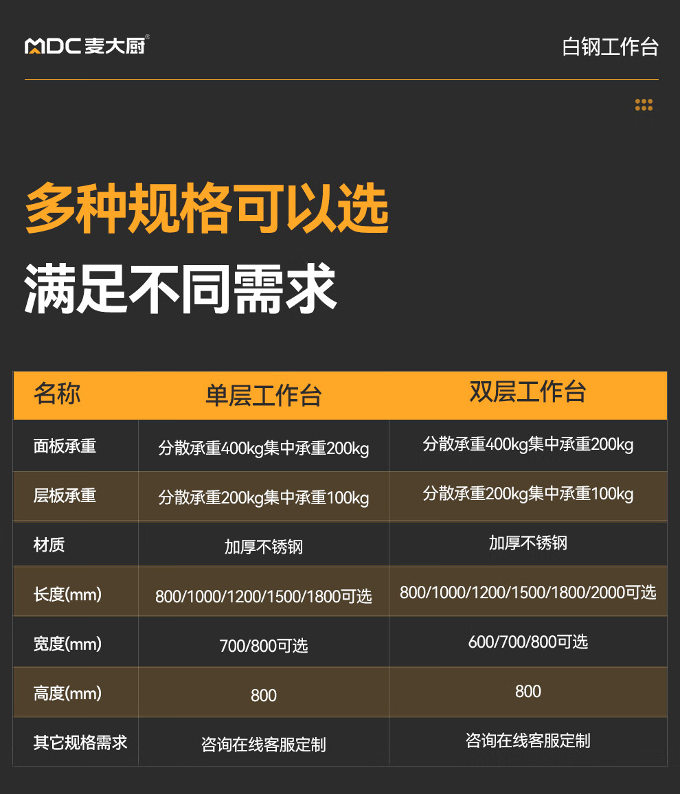 - 更多MDC商用单通工作台规格咨询在线客服