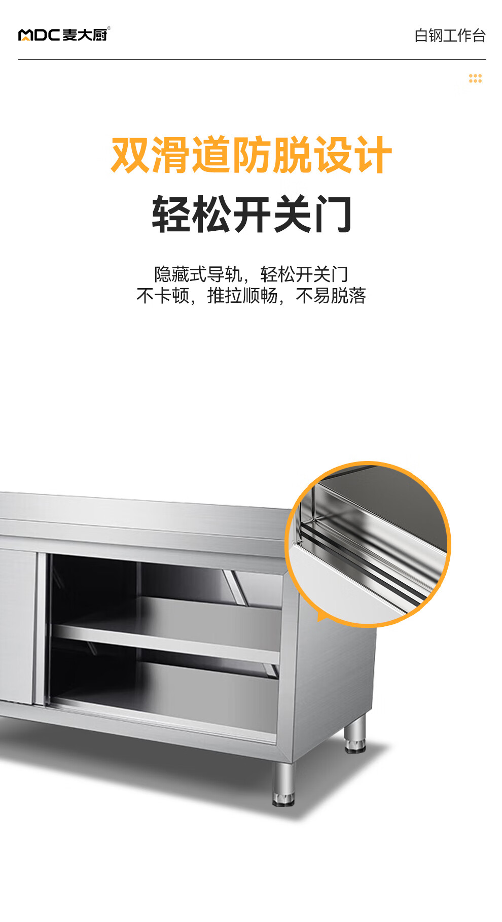 麦大厨2.0m升级款不锈钢工作台单通工作台带靠背