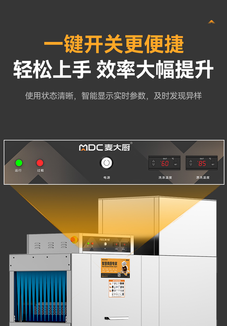麦大厨1.9米通道式单缸单喷单烘干商用洗碗机