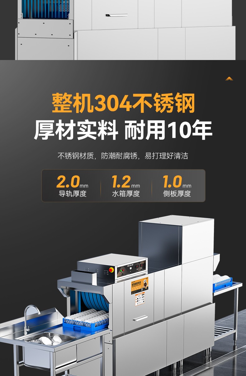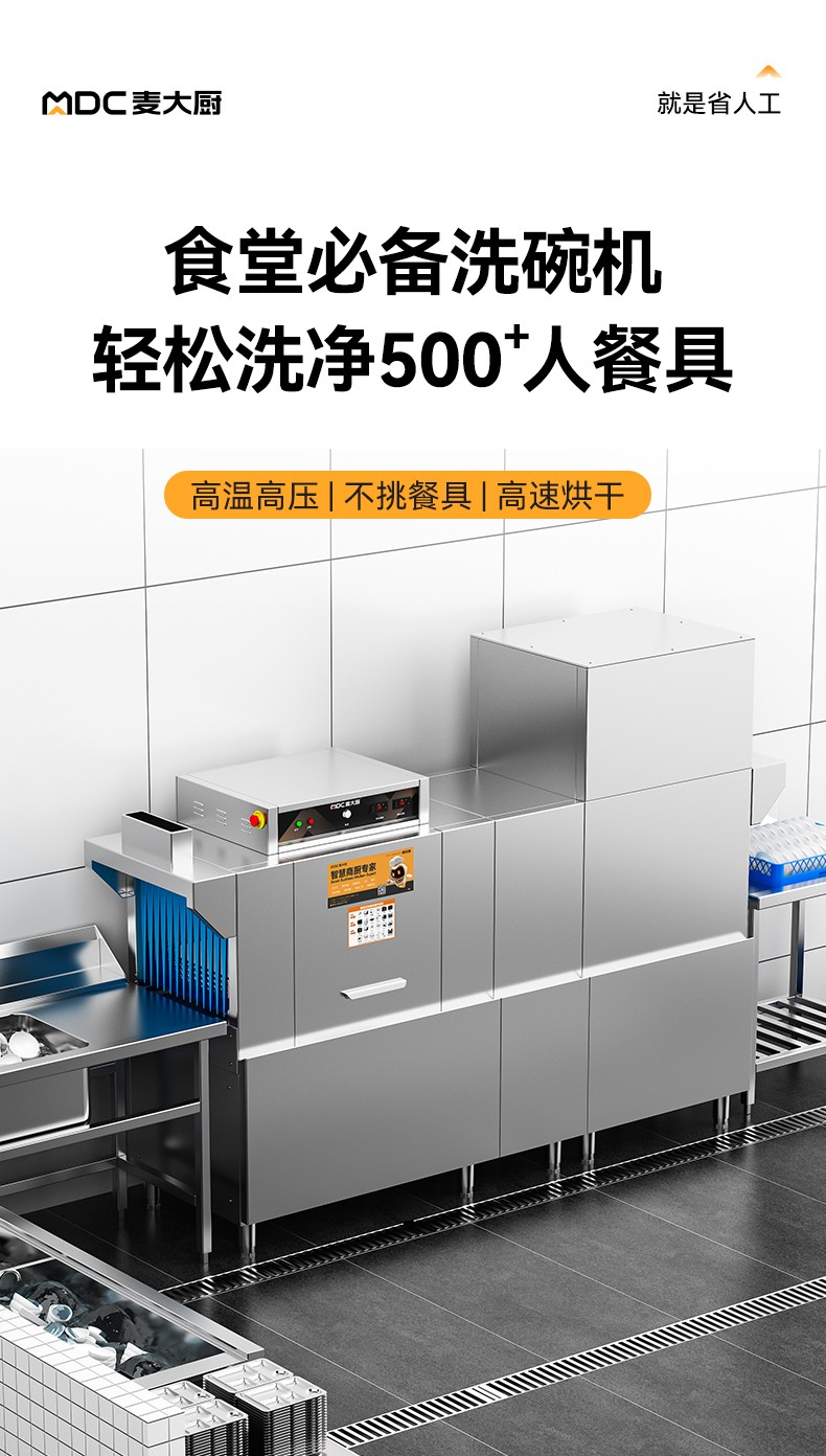 麦大厨2.55米通道式单缸双喷单烘干商用洗碗机