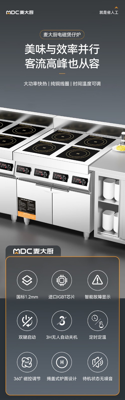 麦大厨商用多头电磁炉旗舰款四头柜式煲仔炉3.5KW