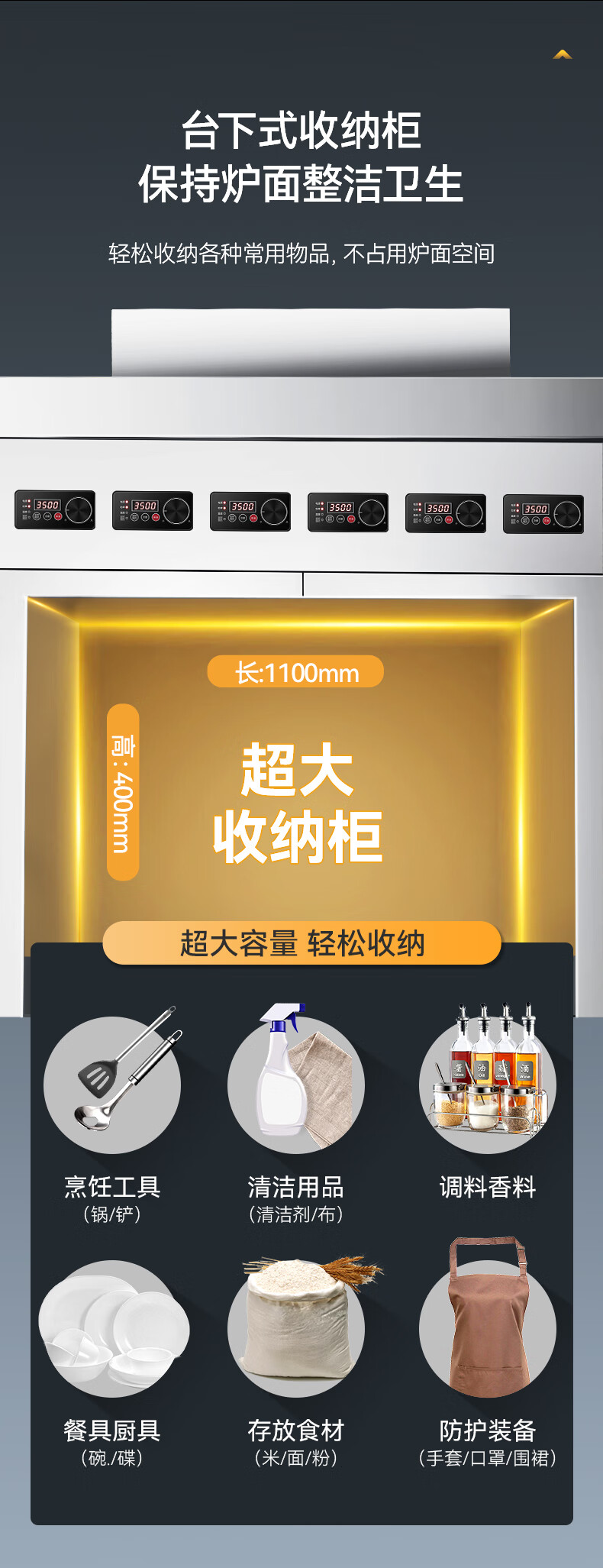 麦大厨商用多头电磁炉旗舰款六头柜式煲仔炉5KW