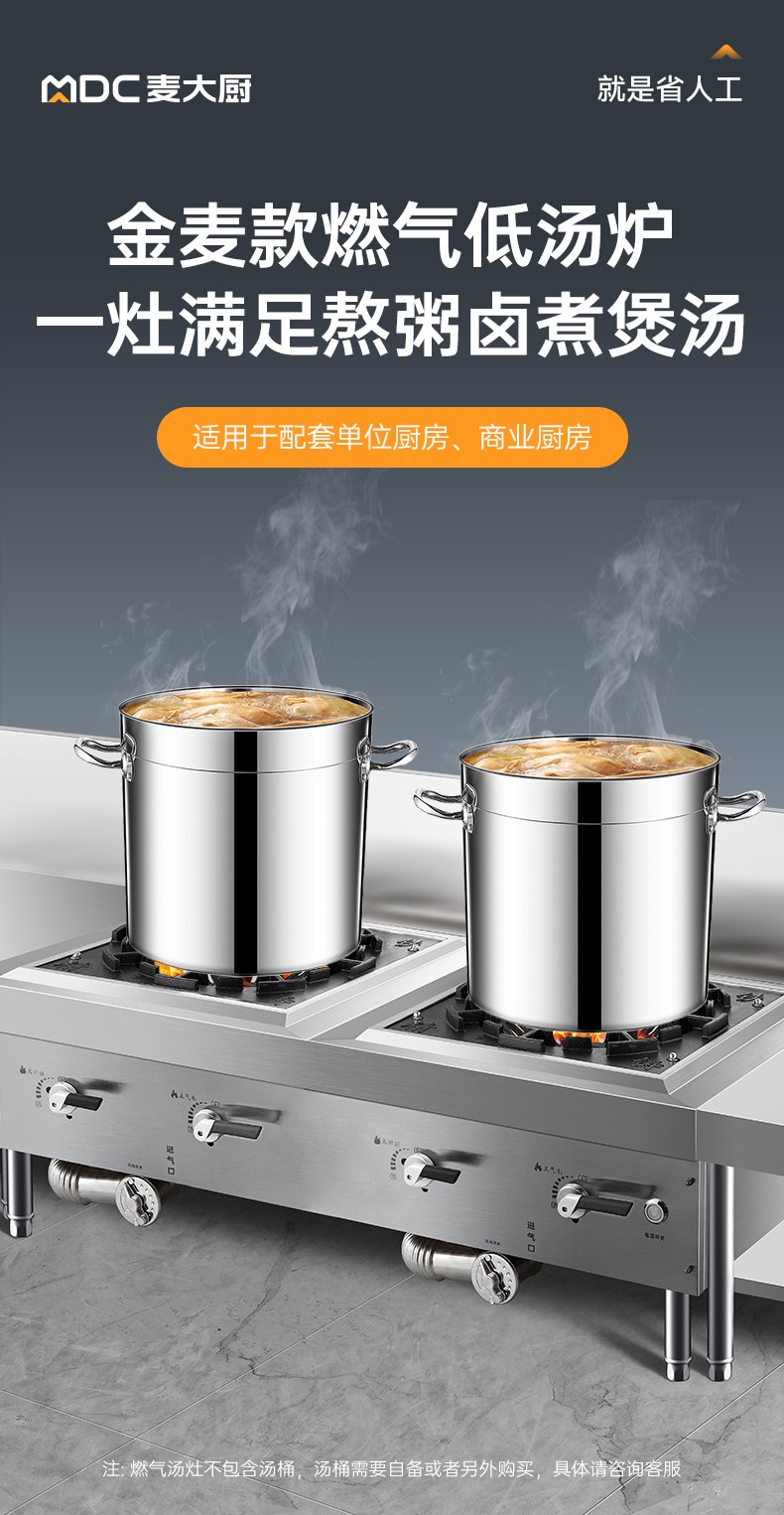 麦大厨金麦款食堂饭店燃气灶商用燃气双头低汤炉60kw