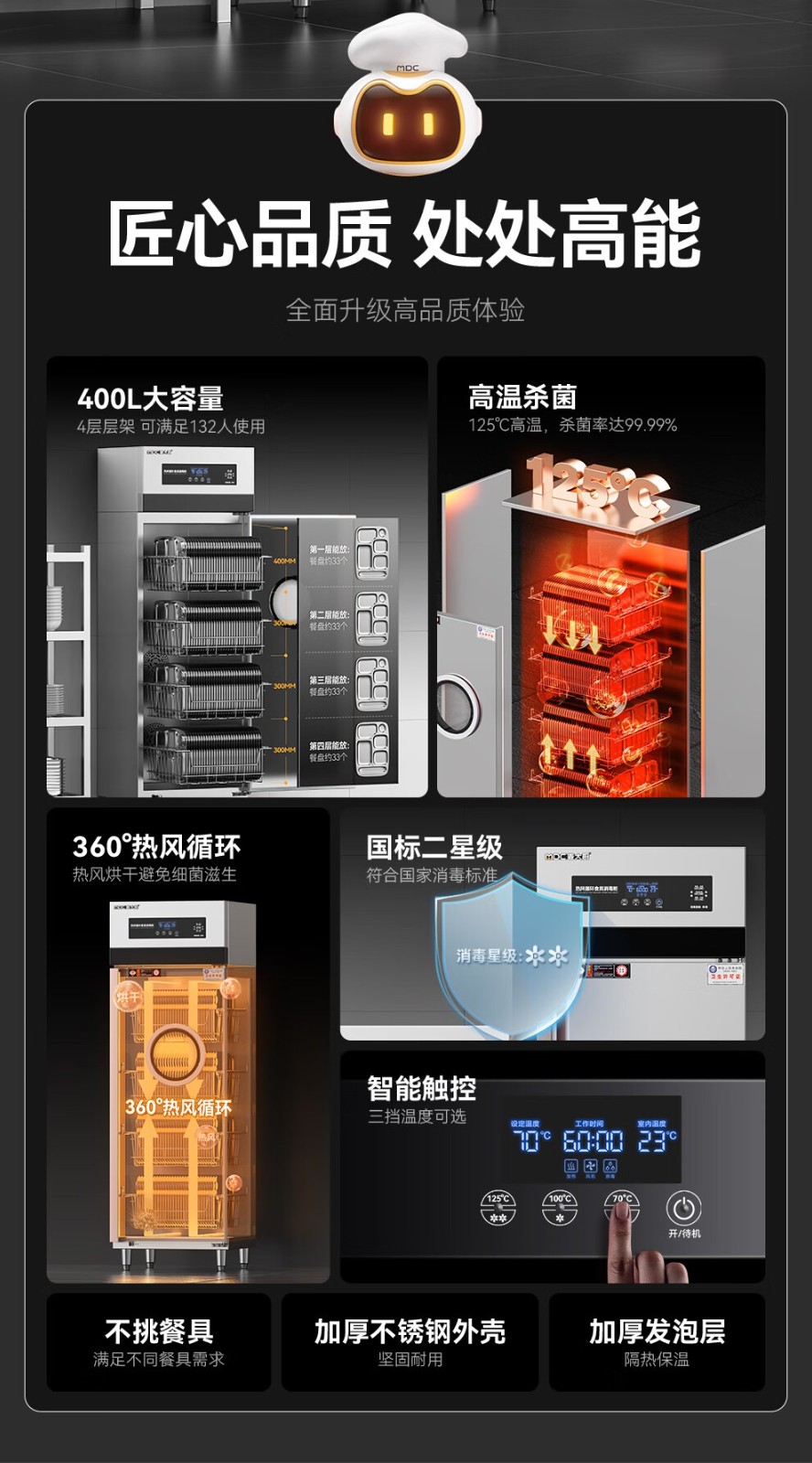 麦大厨智能电脑型单门单控4层热风循环高温消毒柜1850W