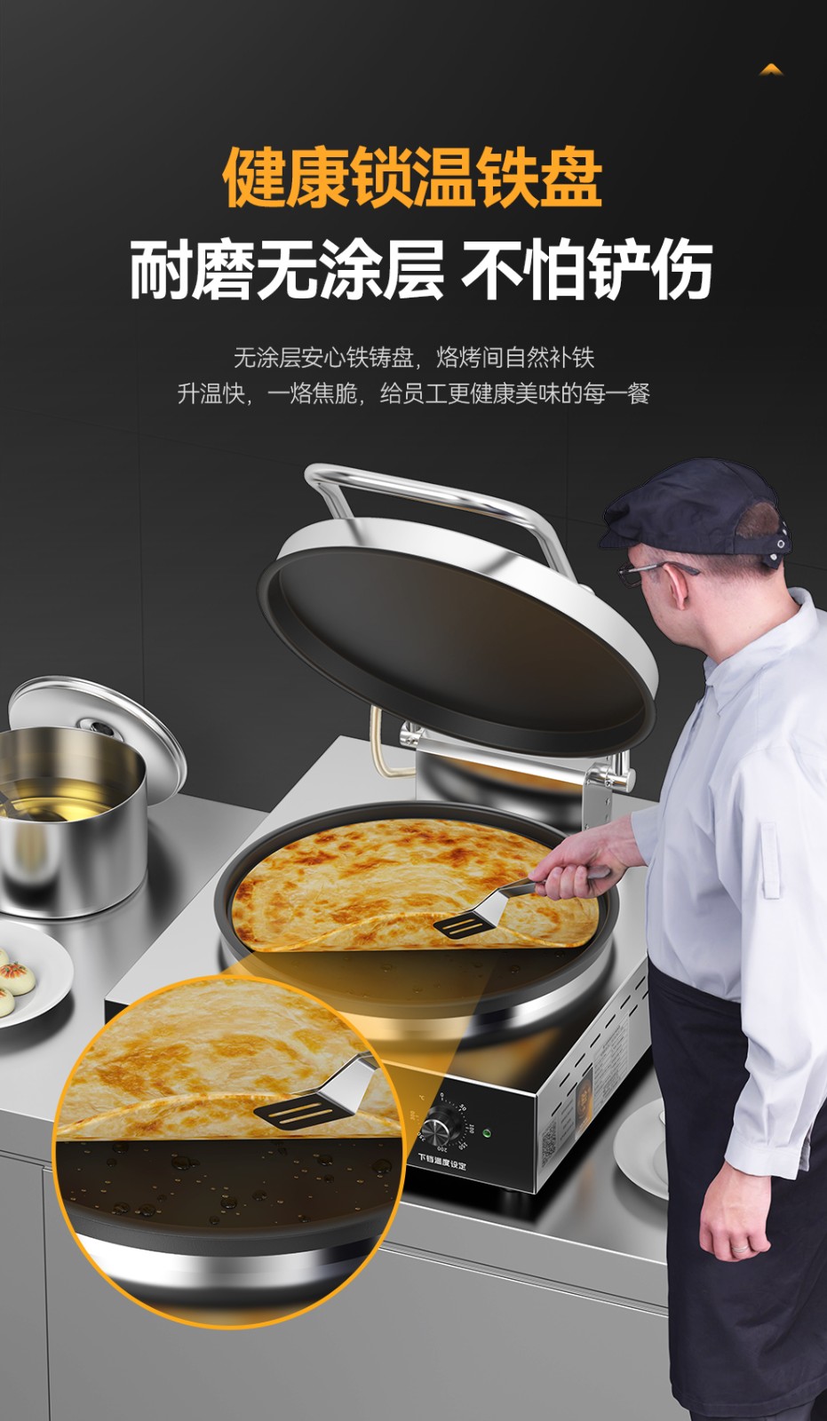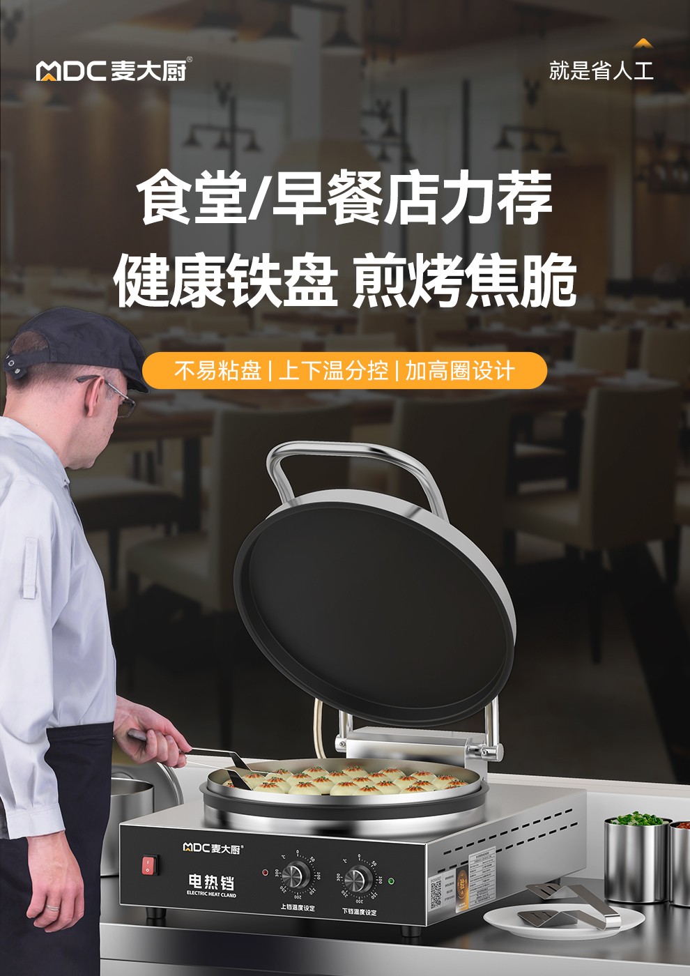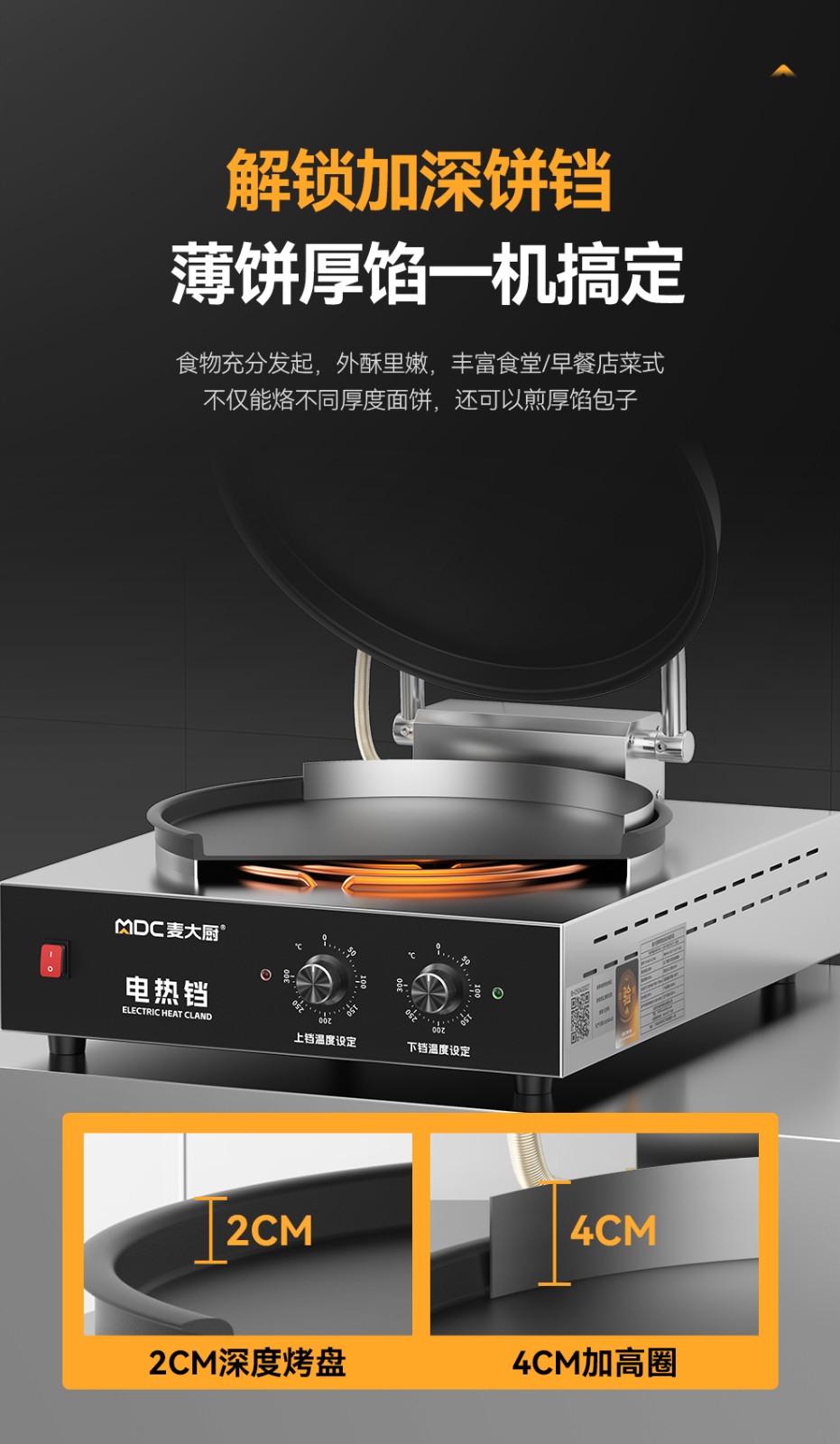 麦大厨台式旋钮款铁锅商用电饼铛大型双面加热