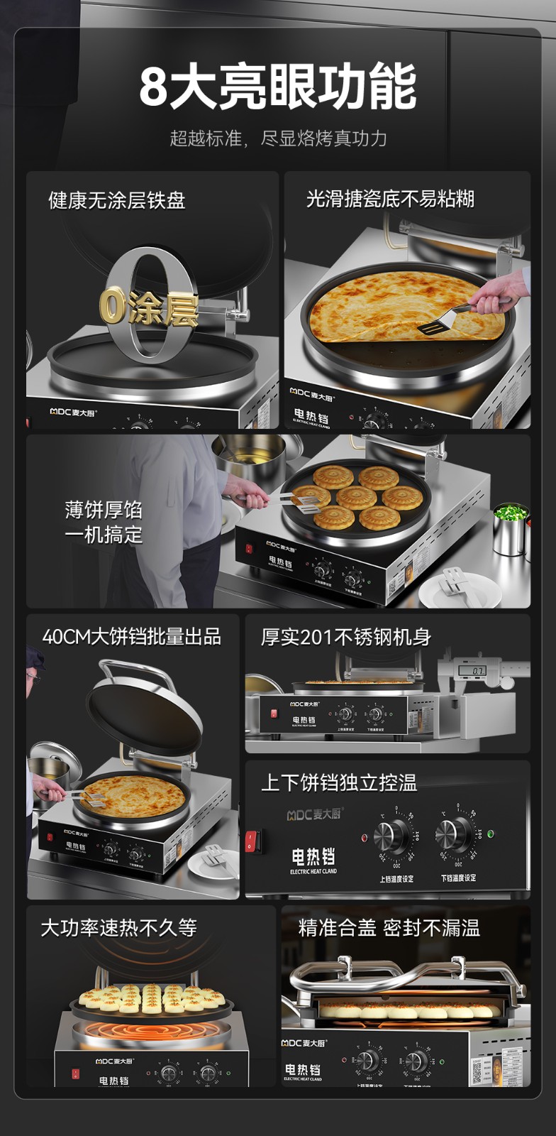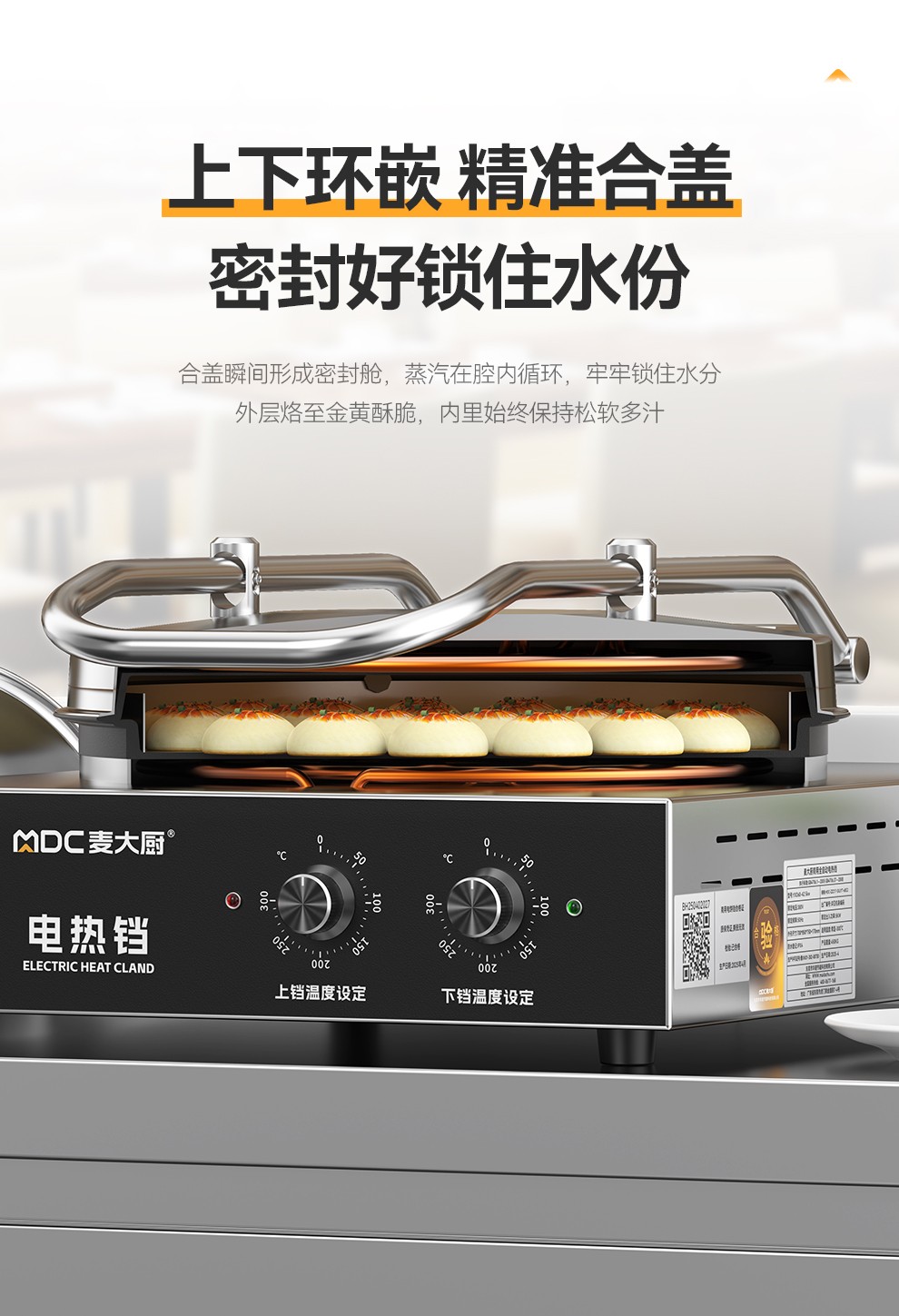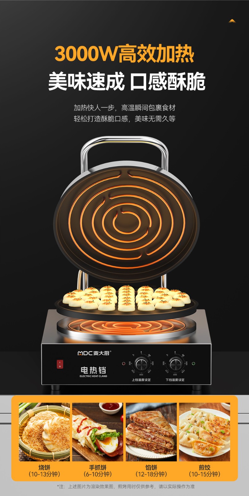 麦大厨台式旋钮款铁锅商用电饼铛大型双面加热