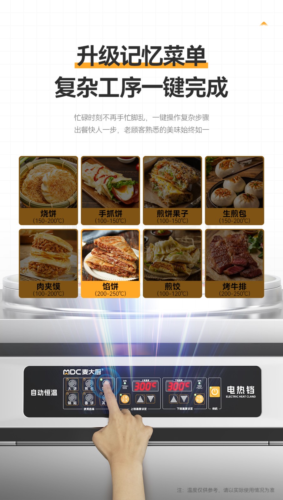 麦大厨商用电饼铛大型双面加热立式电脑款铁/铝锅
