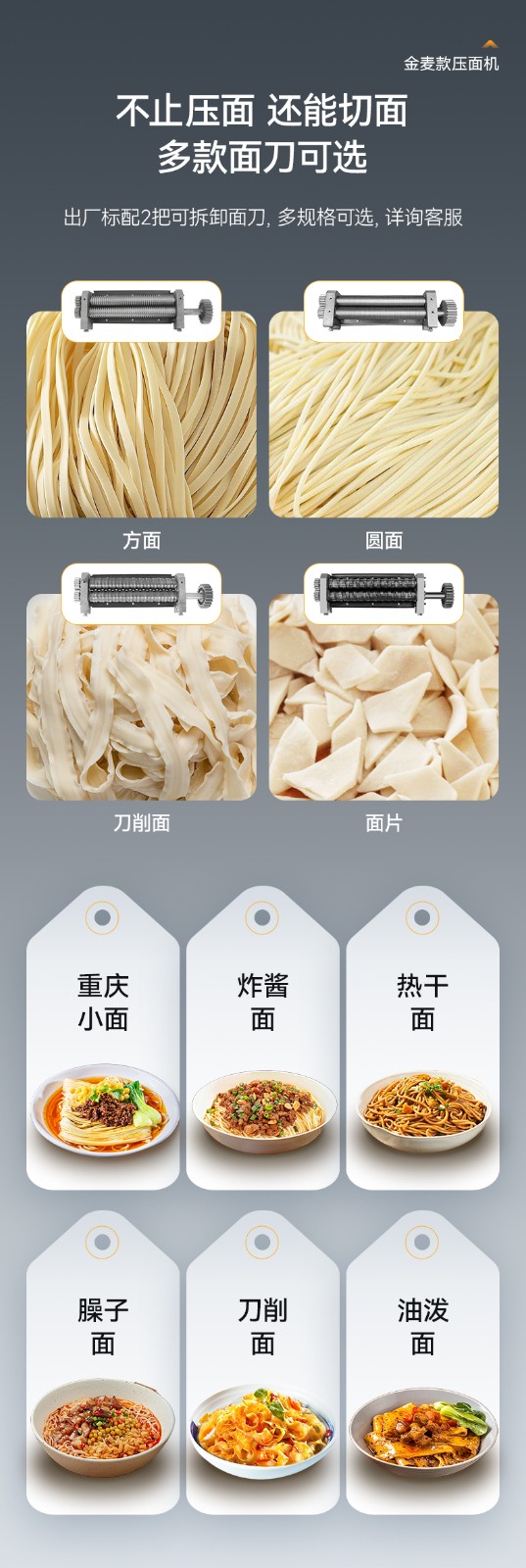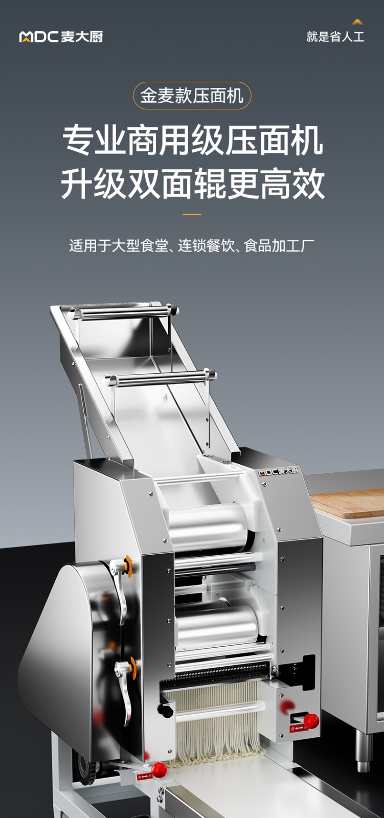 麦大厨金麦款3kW双滚轴压面条机配两把刀商用