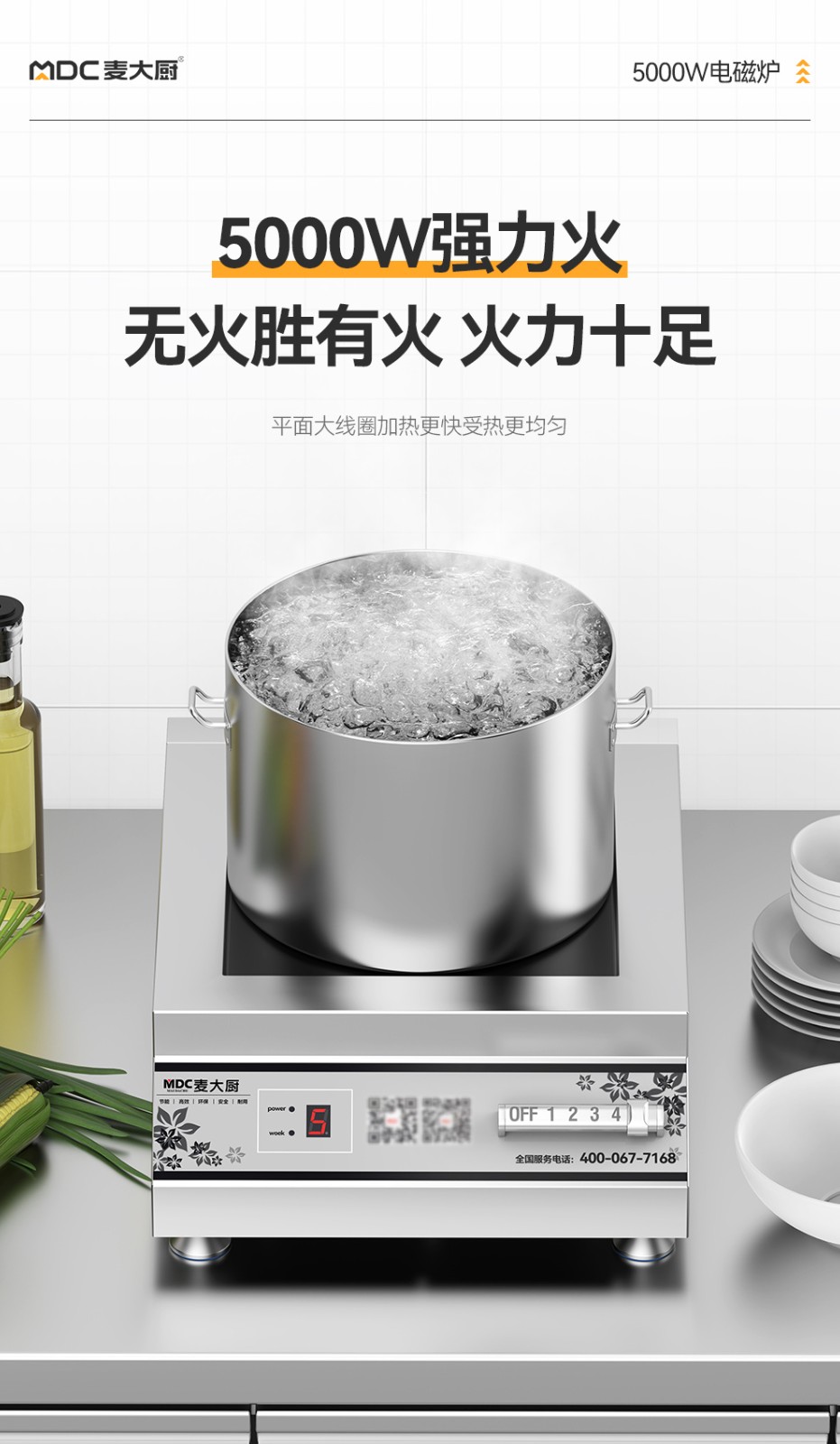 麦大厨磁控款220V台式平面商用电磁炉5kW