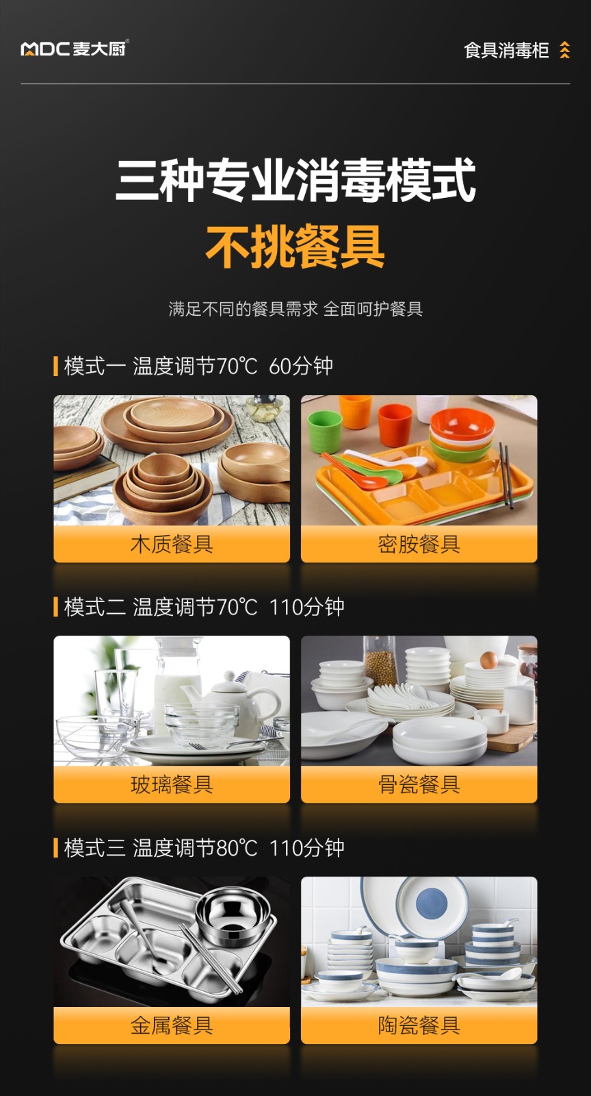 麦大厨豪华触屏款5层双门中温食具消毒柜(紫外线+臭氧+热风循环)950W