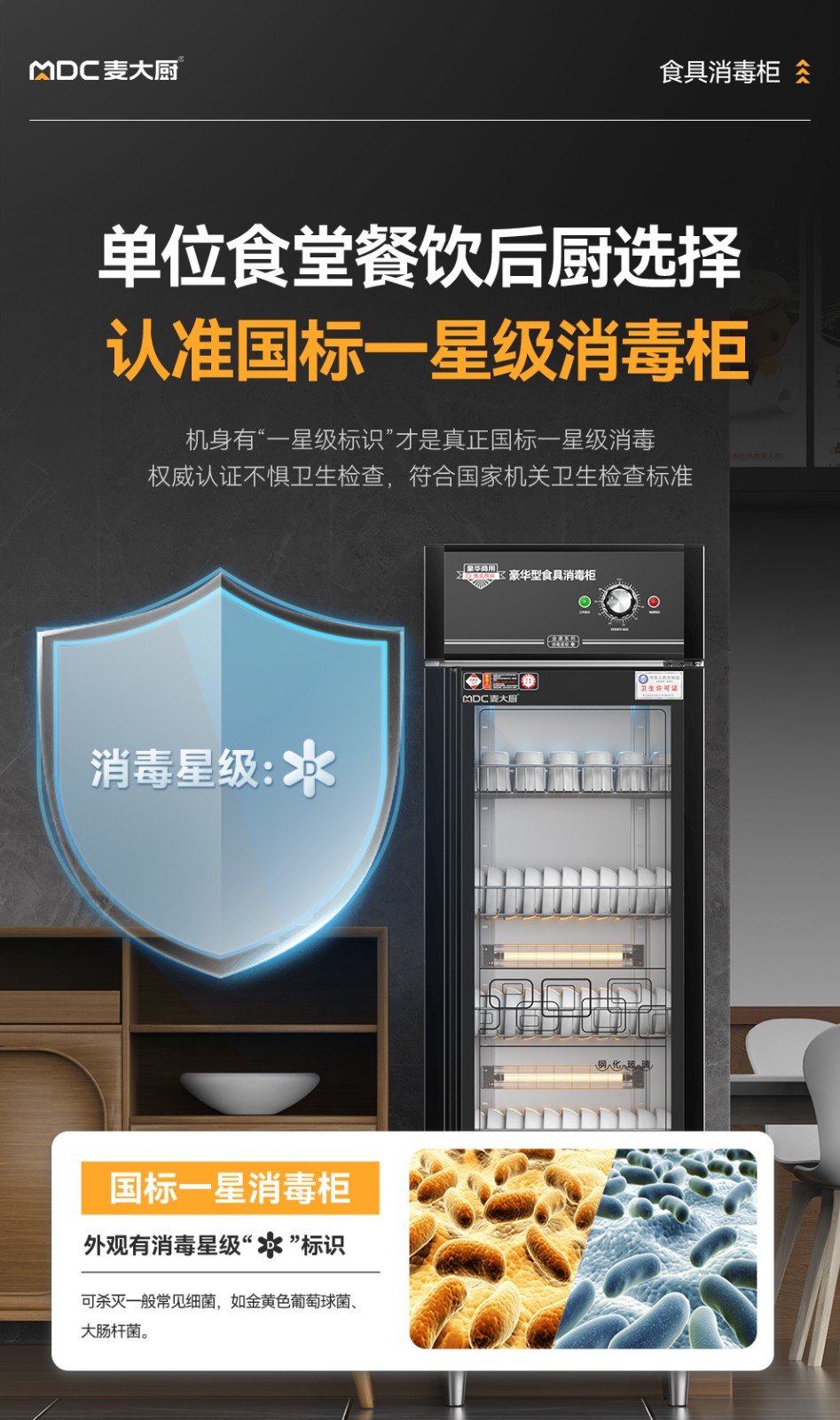 麦大厨豪华旋钮型5层单门中温食具消毒柜(臭氧+紫外线+热风循环)950W
