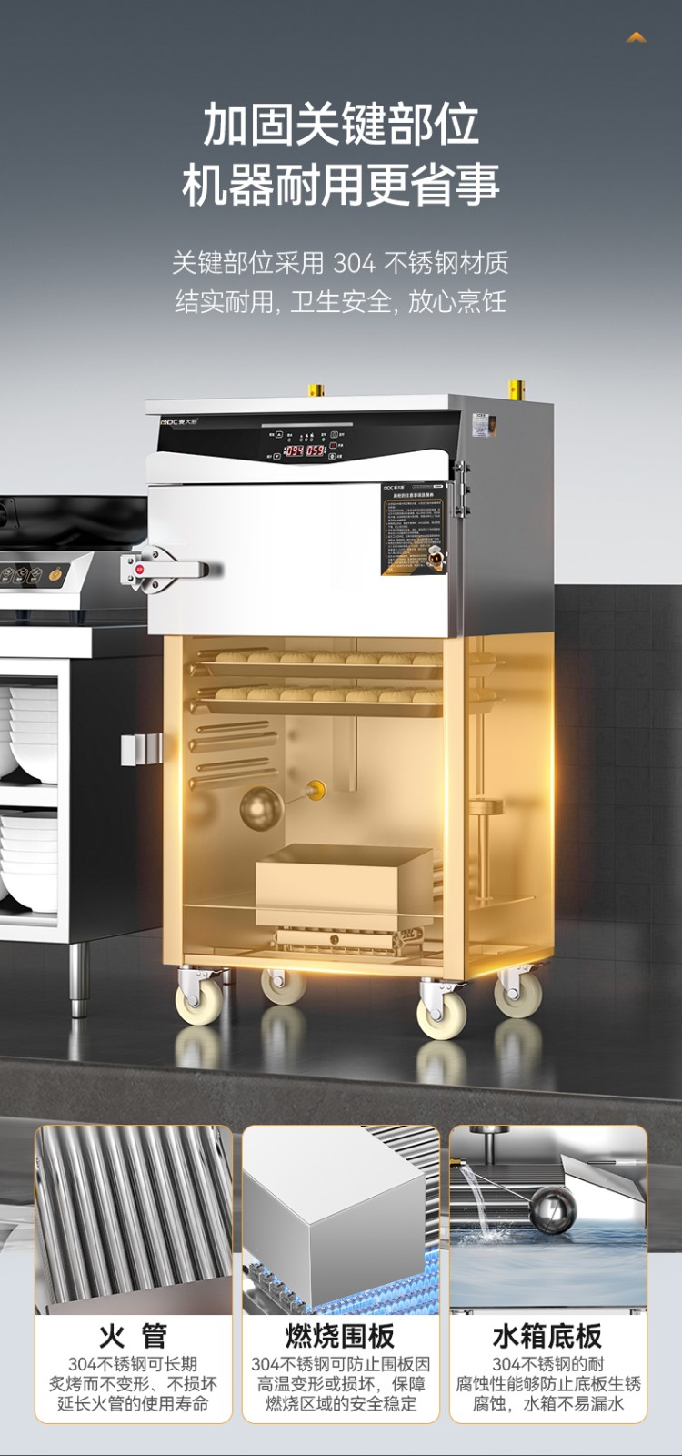 麦大厨商用单门8盘智能恒温燃气蒸饭柜大型食堂蒸饭箱