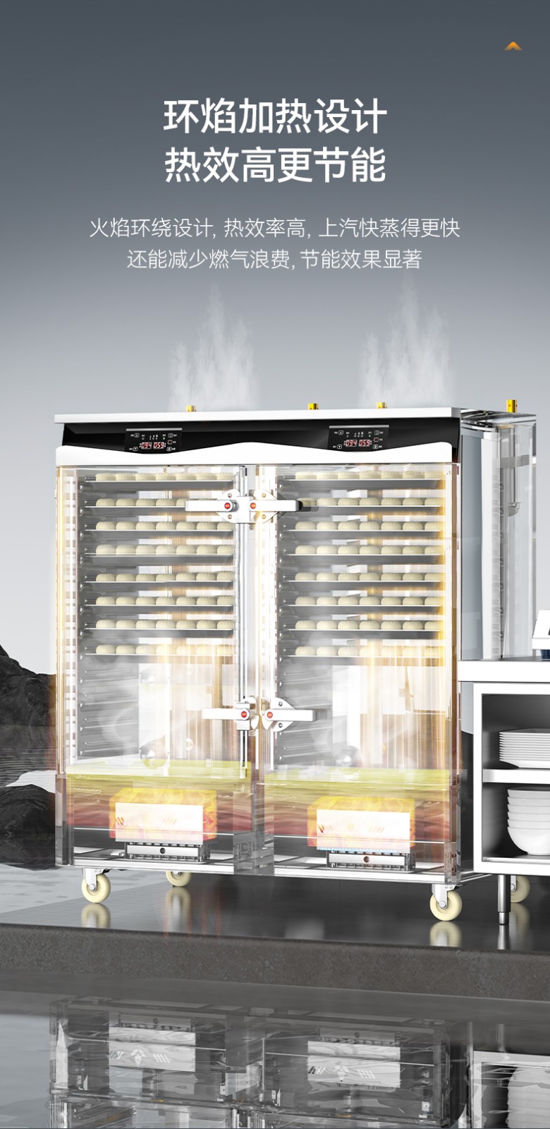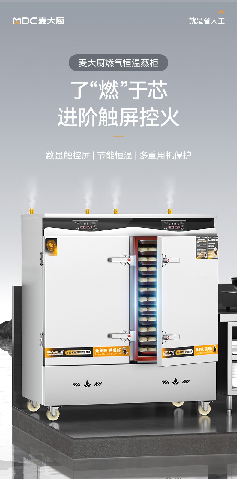 麦大厨商用双门48盘智能恒温燃气蒸饭柜大型食堂蒸饭箱