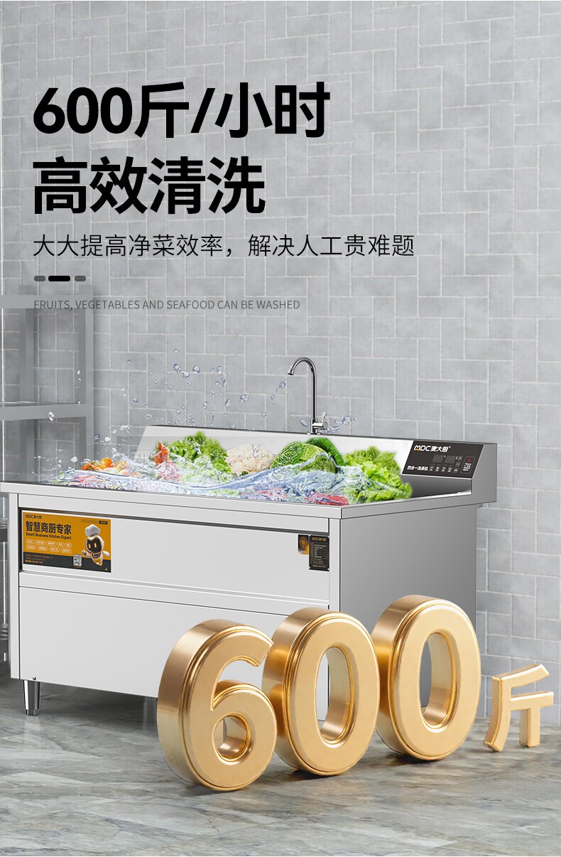 麦大厨商用洗菜机1.5米三合一多功能(气泡、臭氧、加热)洗菜机