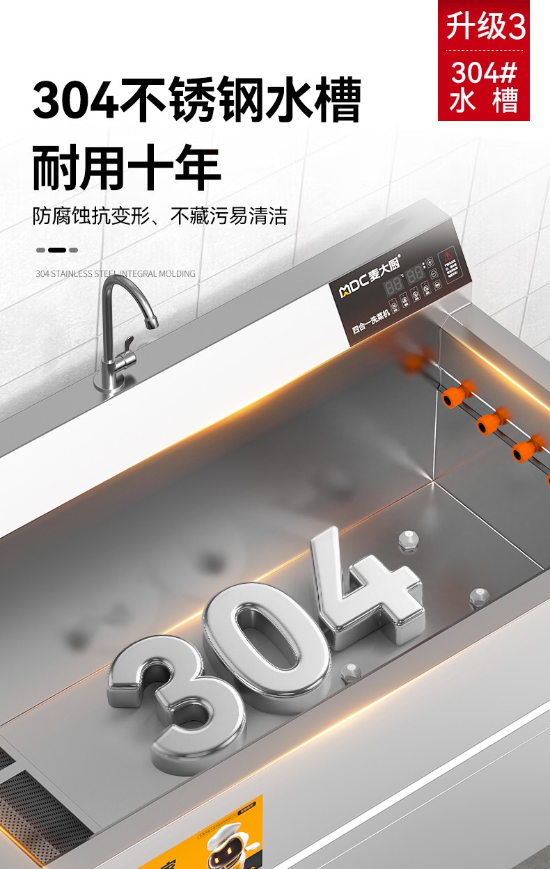 麦大厨商用洗菜机1.5米四合一多功能(气泡、冲浪、臭氧、加热)洗菜机