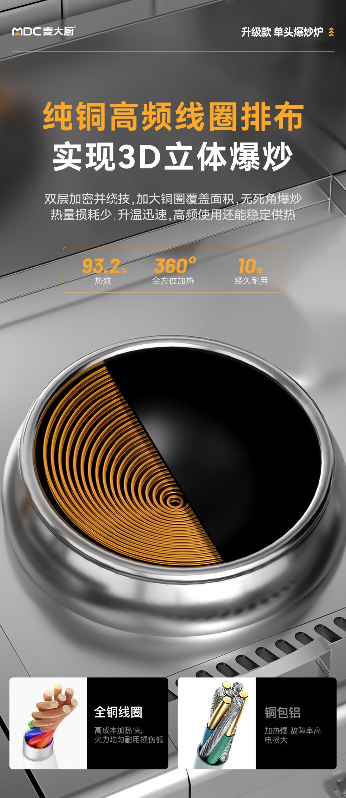 麦大厨食堂大火力电磁灶升级款单头无尾小炒炉商用15kw