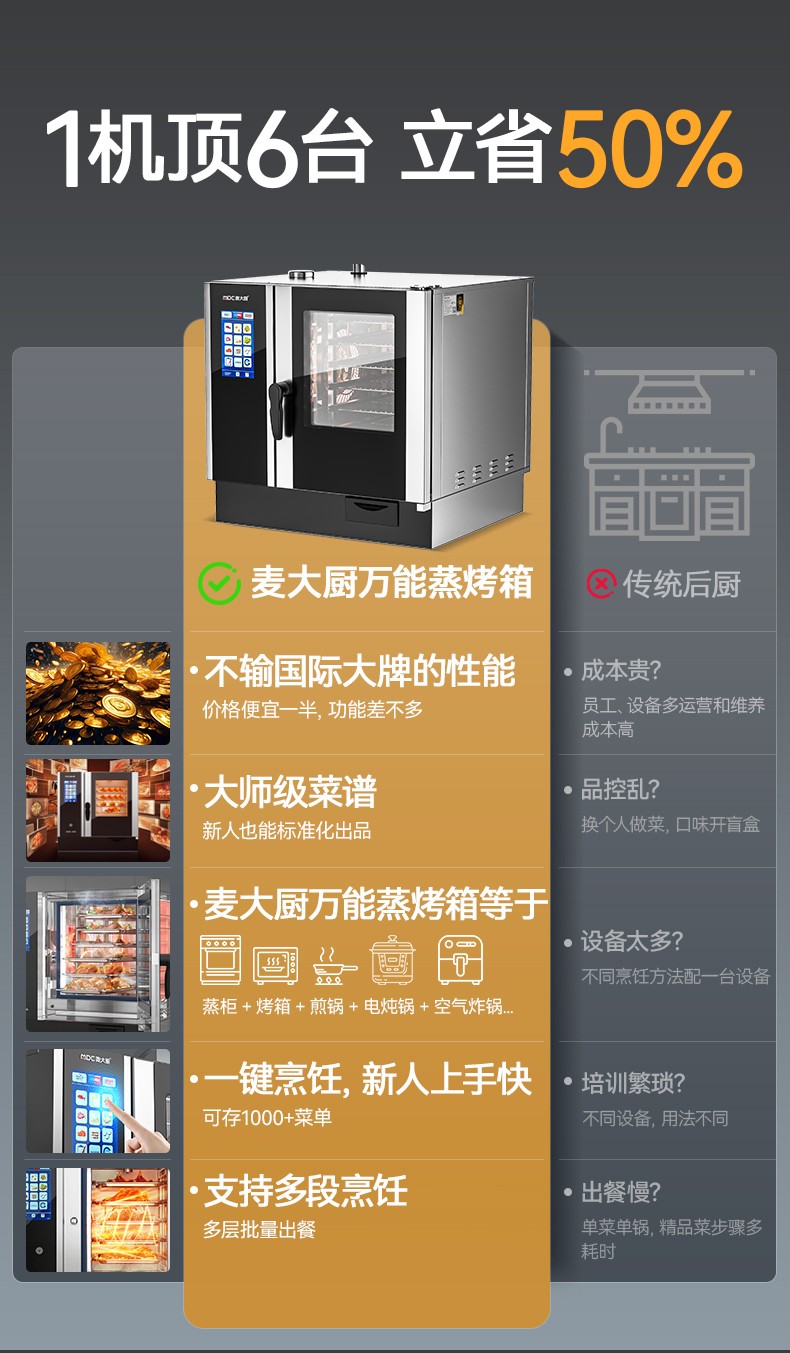 麦大厨ZKA19系列6层触屏式商用万能蒸烤箱10.37kW