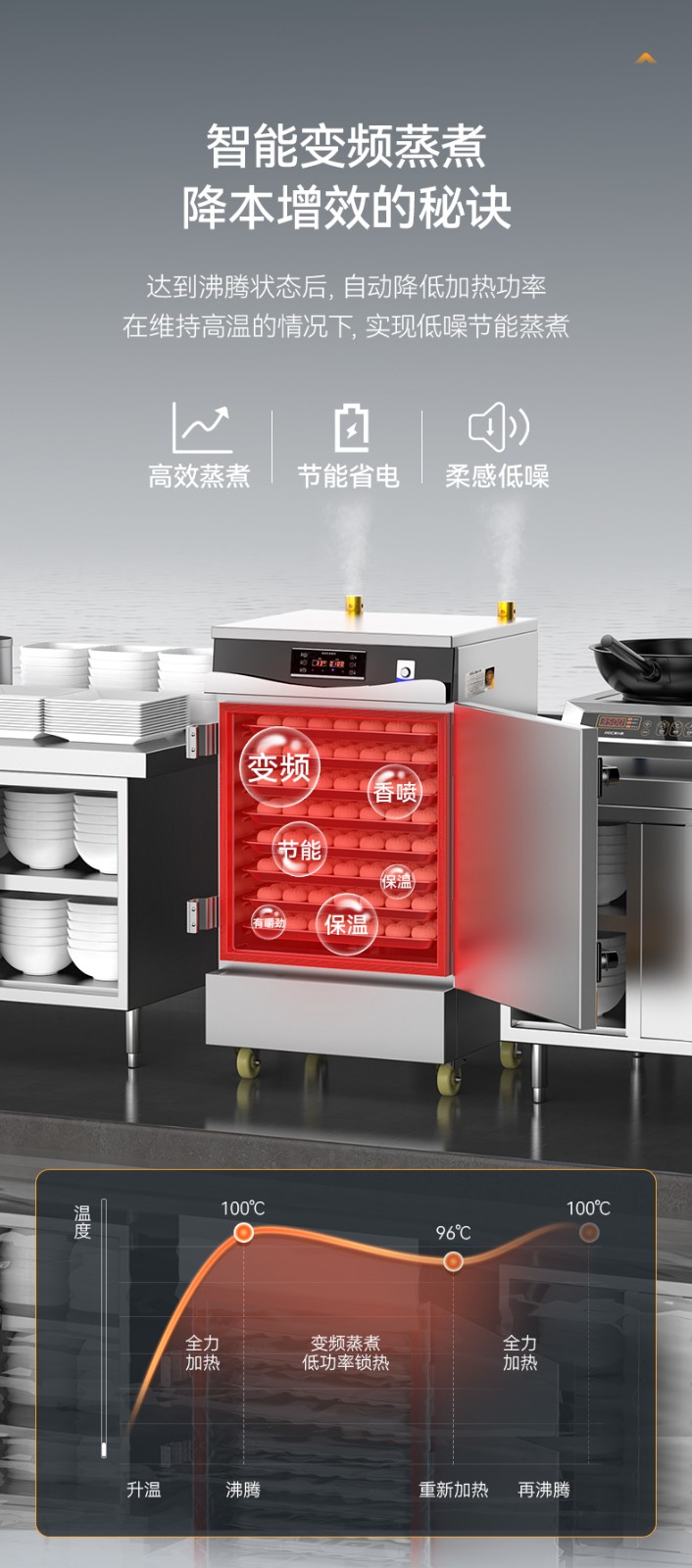 麦大厨商用蒸饭柜8盘变频款智能电蒸箱电热蒸饭车全自动蒸柜