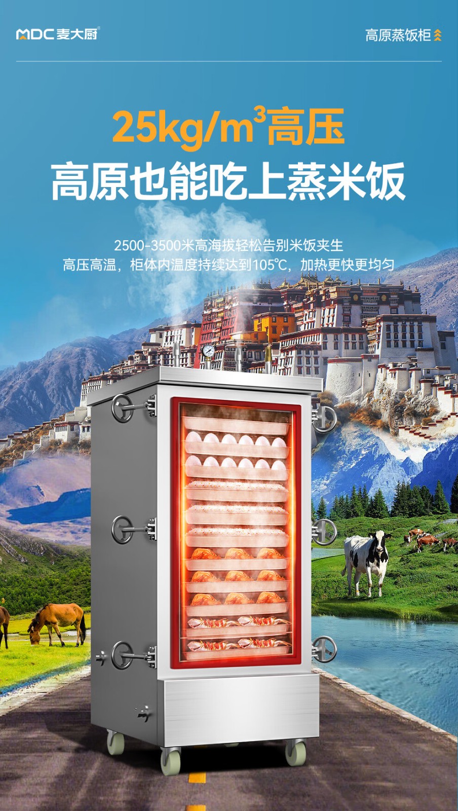 MDC商用高原蒸柜燃气款6盘单门蒸饭柜