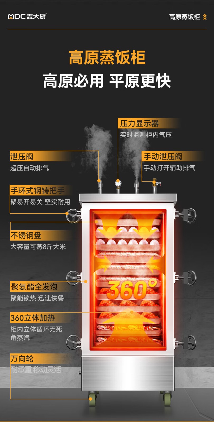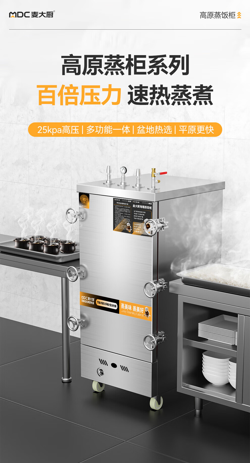 MDC商用高原蒸柜燃气款8盘单门蒸饭柜