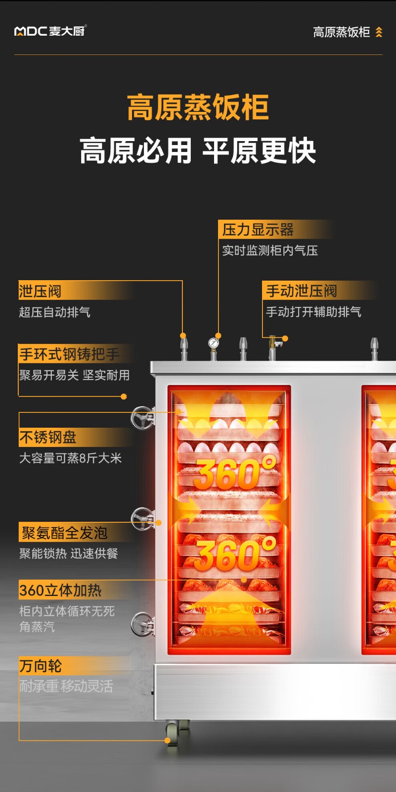 MDC商用高原蒸柜燃气款10盘单门蒸饭柜
