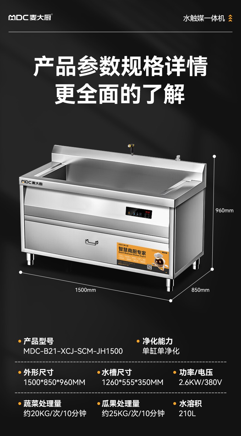 麦大厨1.5米自动商用洗菜机去农药残留单缸水触媒净化机