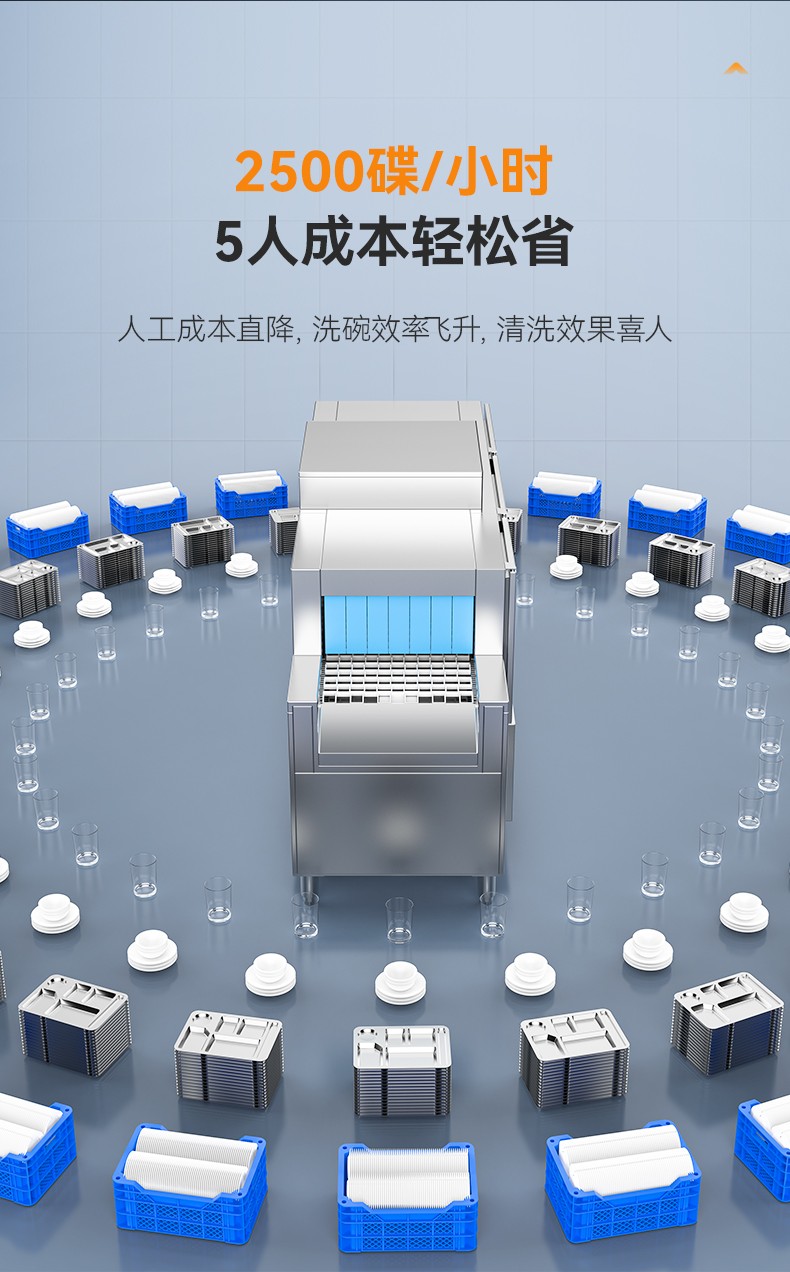 麦大厨旗舰款2.95m平放式双缸单喷淋长龙式洗碗机